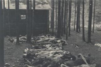 Dieses Bild wurde vermutlich von einem Zusmarshauser Fotografen aufgenommen. Es zeigt über ein Dutzend Tote in einem Wald. Handelte es sich um KZ-Häftlinge aus dem Waldwerk Kuno?